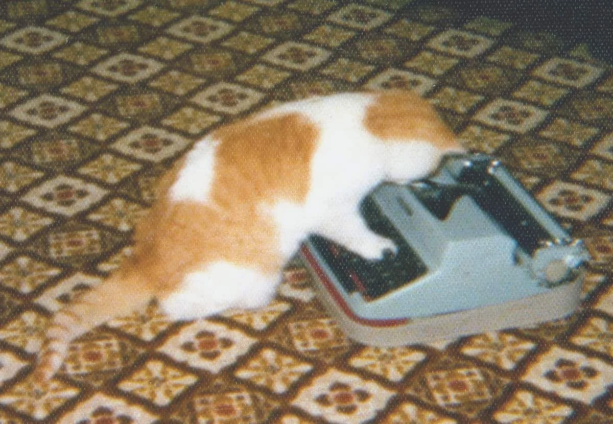 Marmaduke was my favourite. A big orange-and-white tabby with more personality than most people. He would sit at the typewriter, batting the keys like he was working on his own column.