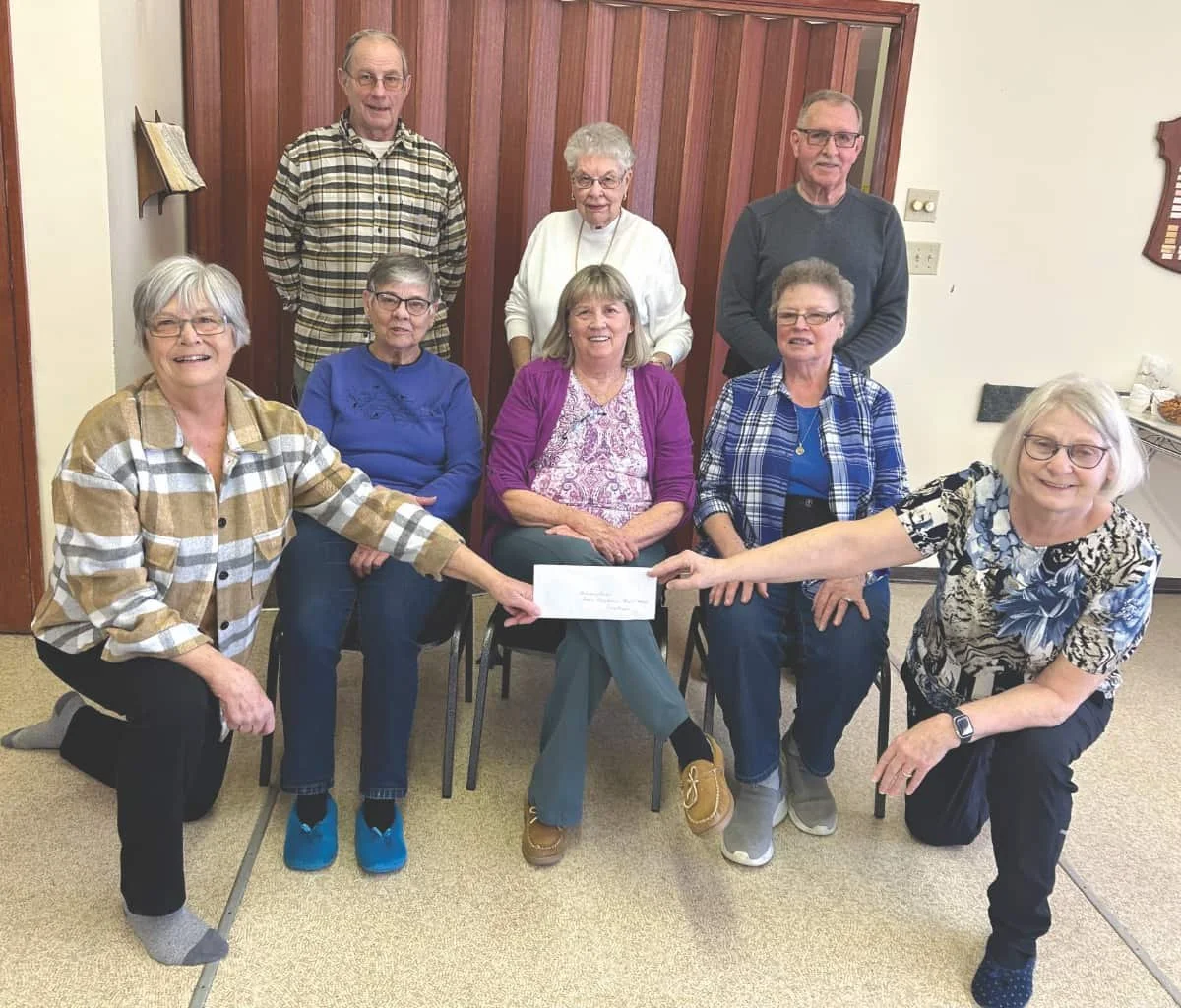 Those present for the cheque presentations included, in the back row (left to right), Jim Wright, Lynn Farquharson, and Larry Deitsch; middle row Jayne Labrecque, Cindy McRae, and Carol Gates; and in the front row, Darlene Aitken, representing the Red Cross Creations group, and Wendy Clayton, president of the Rosetown Seniors. Also pictured were Pat Aylward, representing the Red Cross Creations group, and Crystal Storey, representing the Rosetown Youth Group.