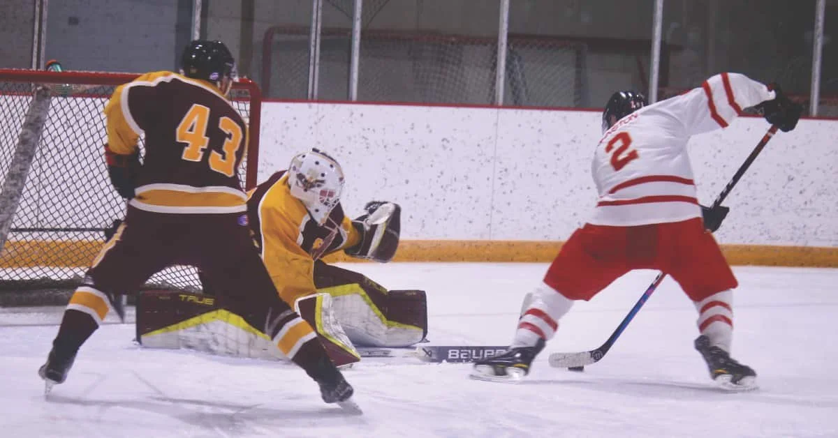 Redwings captain shoots on Outlook Ice Hawks
