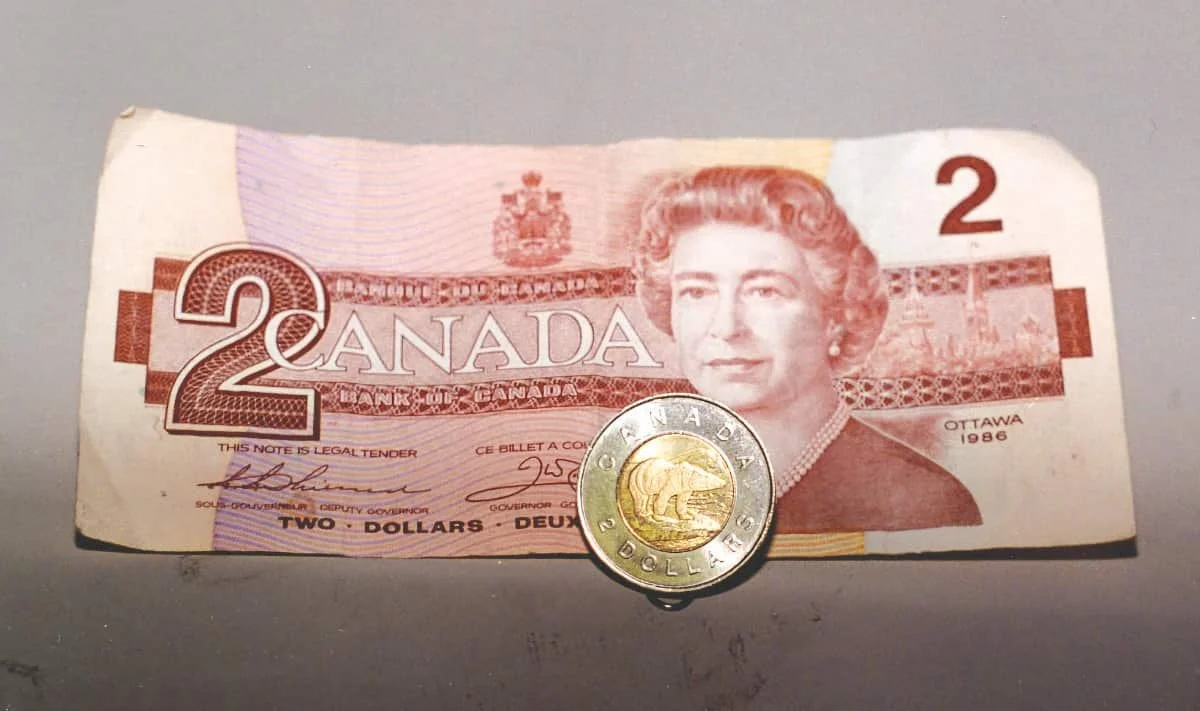 This photo was originally published in the Rosetown Eagle on February 26, 1996, accompanying one of the top stories of that week: the toonie replacing the two-dollar bill. This change came into effect across the country on February 19, 1996, when the coin was officially launched at Ben’s Deli in Montreal. The bill was withdrawn from production three days prior to the launch. The two different metals that comprise the coin are joined by a bimechanical locking mechanism. In the early days, there were reports that the locking mechanism could fail, causing the bimetallic coins to separate if struck hard enough or frozen. However, chances of that happening were described as being about one in 60 million, and purposely attempting to separate the two parts is considered to be “defacing coin currency” under the Canadian